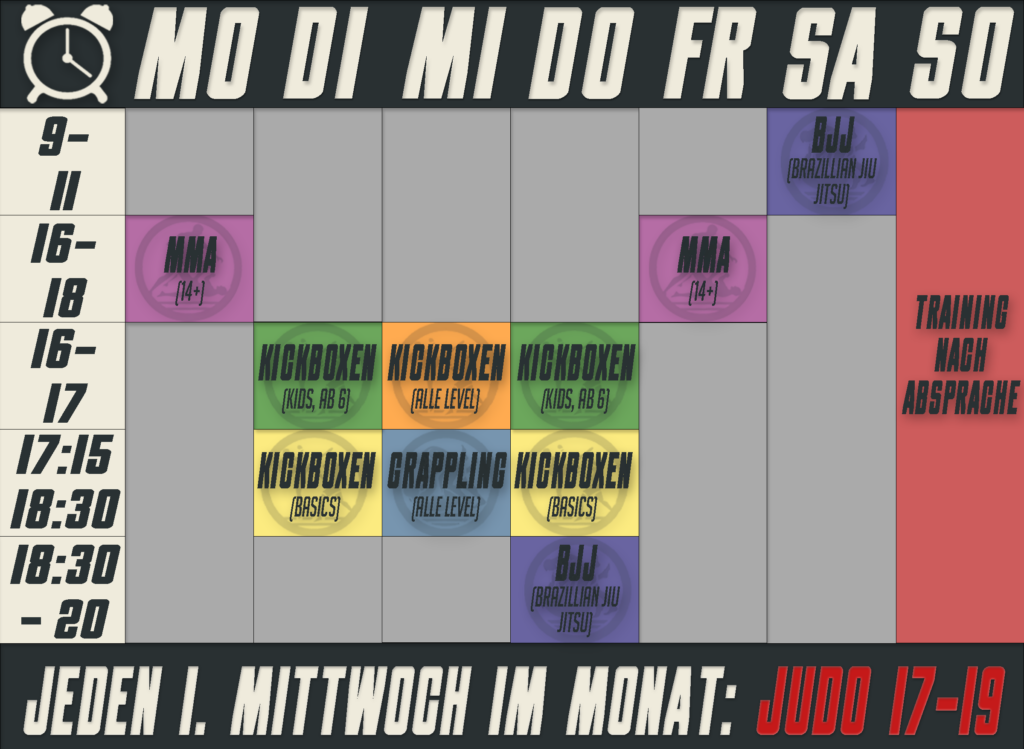 Der Kursplan kann sich ändern, alle Informationen darüber gibt es tagesaktuell auf Instagram.